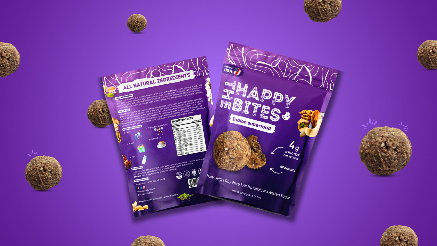 We are proud to bring you centuries old Indian superfood snack, the traditional dates, nuts and acacia gum-based energy balls. Happy bites are a modern twist our family’s authentic recipe bursting with rich and delicious flavors. This nutrient dense, healthy snack will not only satisfy your cravings and provide energy boost but also provide many health benefits.